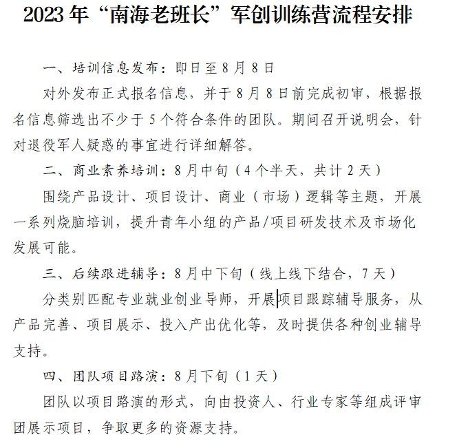 www.crownsportssitehub.com1.2023年“南海老班长”军创考试营历程安排